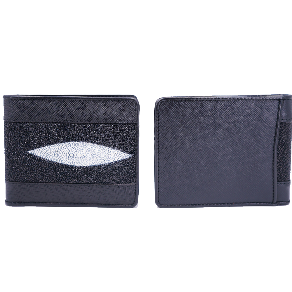 ผลิตจากหนังปลากระเบนแท้ ผสมกับหนังวัวแท้ลาย Saffiano