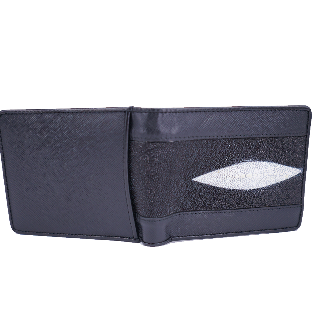 ด้านนอกผลิตจากหนังปลากระเบนแท้ ผสมกับหนังวัวแท้ลาย Saffiano