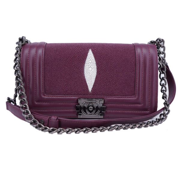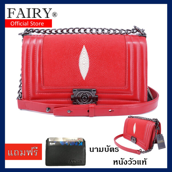 #SR CH10 กระเป๋าหนังปลากระเบนแท้ ทรง chanel boy 10 นิ้ว