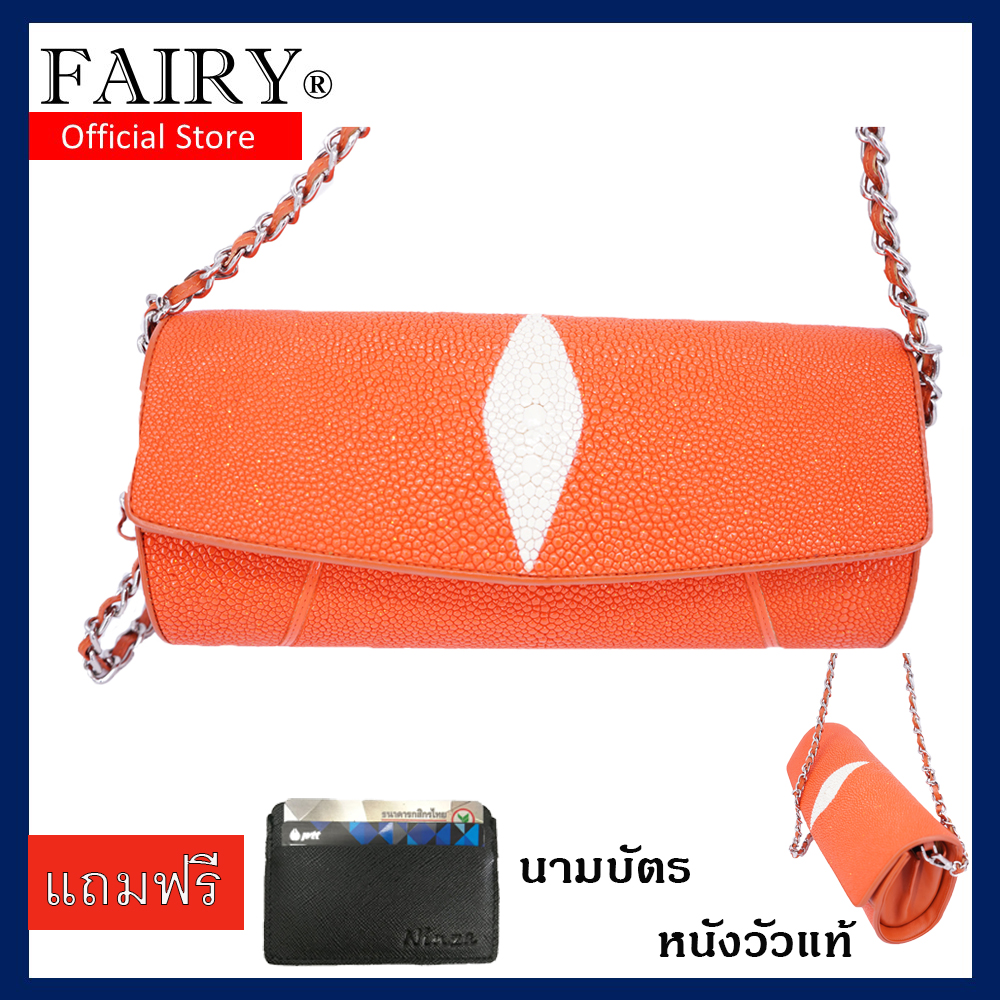 - กระเป๋าผลิตจากหนังปลากระเบนแท้ ทรงกระบอก